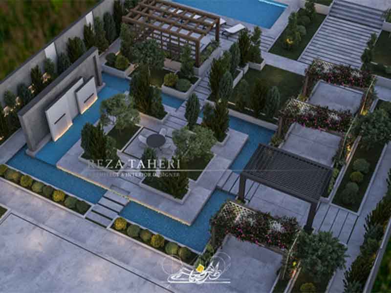 - پیچیدگی طراحی: طراحی ساده با حداقل المانها در مقابل طراحی پیچیده با آلاچیق، آبنما، باربیکیو، نورپردزی حرفهای، سیستم آبیاری اتوماتیک پیشرفته و کفپوشهای خاص.