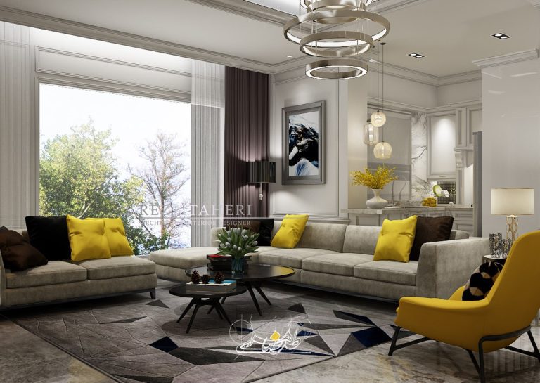 • زون‌بندی دقیق با المان‌های معماری:استفاده از دیوارهای کوتاه، ستون‌های دکوراتیو، تفاوت سطح کف، تغییر جنس کف‌پوش.